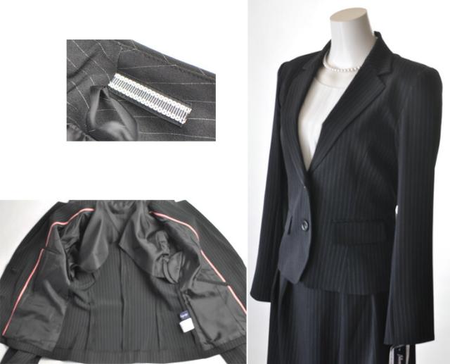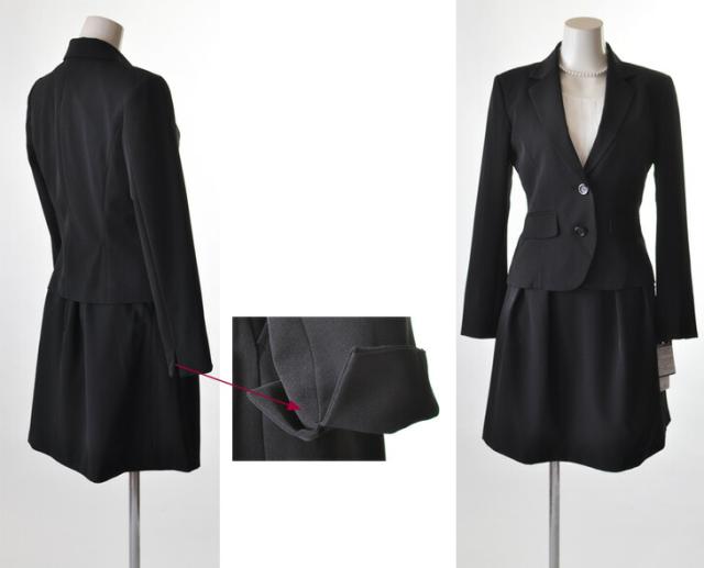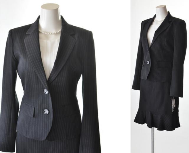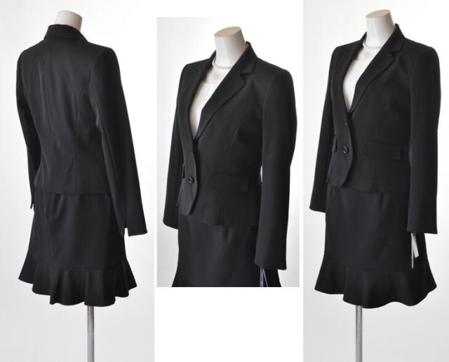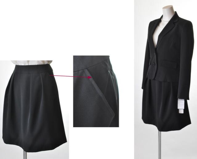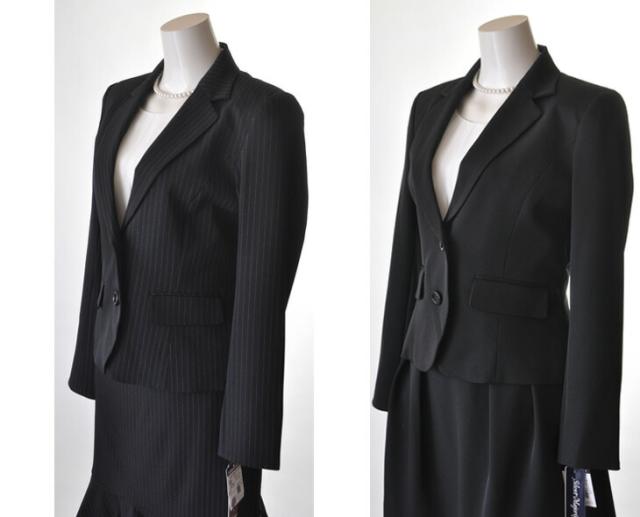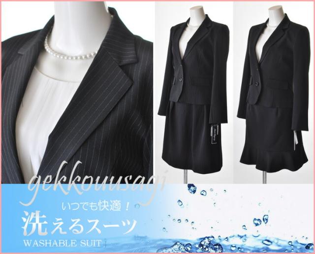 洗えるスーツ 選べるスカート丈 小さいサイズ 5号/7号/9号/11号/13号/15号 大きいサイズ 裏地背抜きジャケット+スカート2着3点スーツ タック入りスカート 裾切替マーメイドスカート ブラウスずれ防止スカート 【黒・ストライプ】013-52/014-56(auA4U)