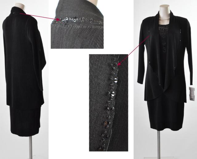 ジャケット流れるようなドレープと首周りから前へのスパンコールがシルエットの美しさと華やかさをを引き立てます。