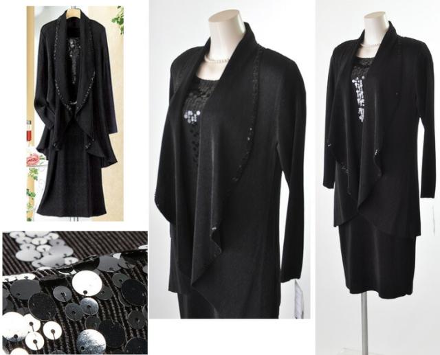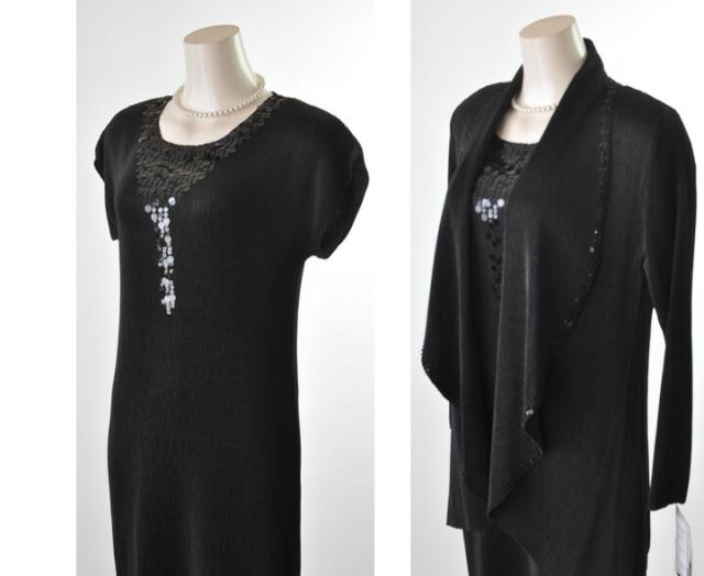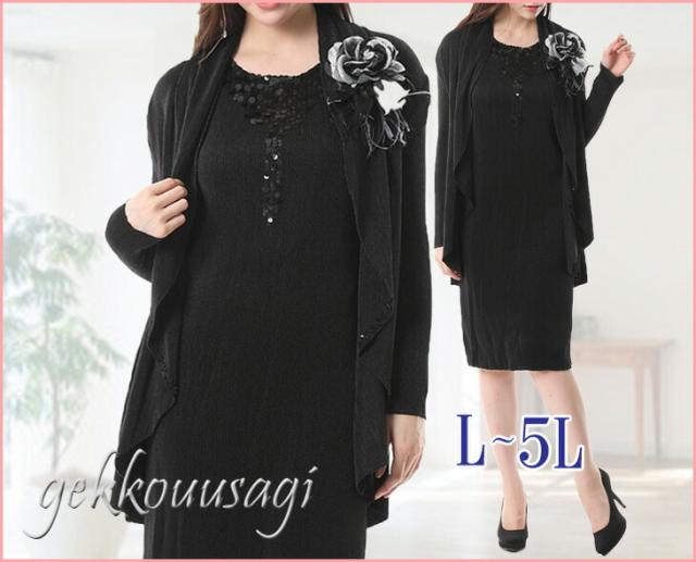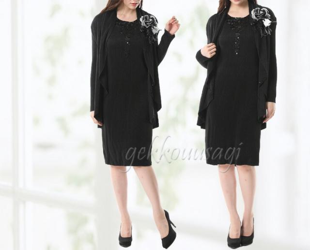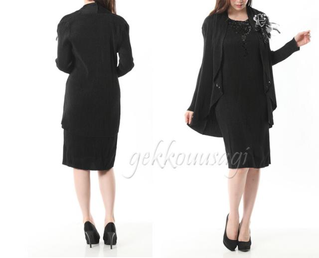 送料無料 L/LL/3L/4L/5L 大きいサイズ 大人カラーフォーマルアンサンブル ドレープジャケット&ワンピーススーツ黒 プリーツアンサンブル 美シルエット 30代 40代 50代 60代 卒園式 卒業式 発表会 結婚式 ママ 母親 (BL1Y3)
