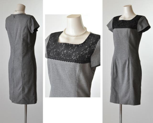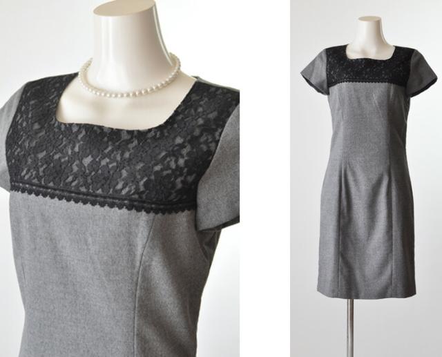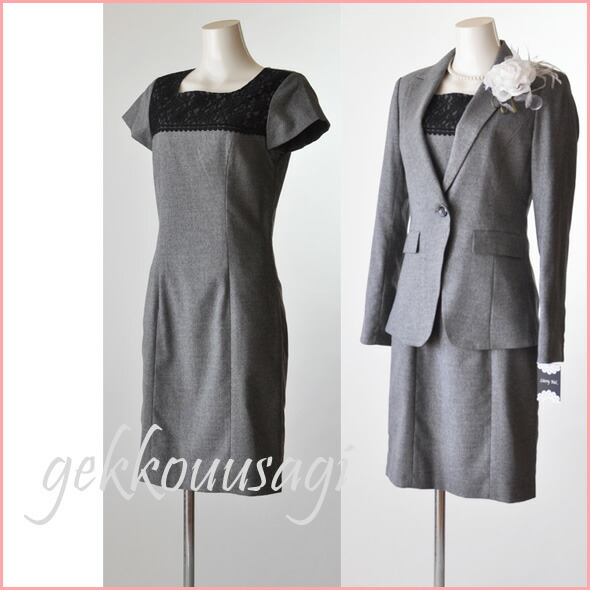 送料無料 卒業式スーツ ママ 入学式 スーツ 母親 7号 9号 卒業式 入学式 結婚式 胸元レース ワンピーススーツ・グレー セレモニースーツ 春スーツ 秋スーツ ライトフォーマル きちんと感 美シルエット 20代 30代 40代 50代 60代 70代 80代 528(am10r4)