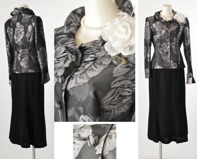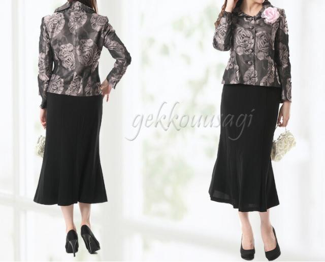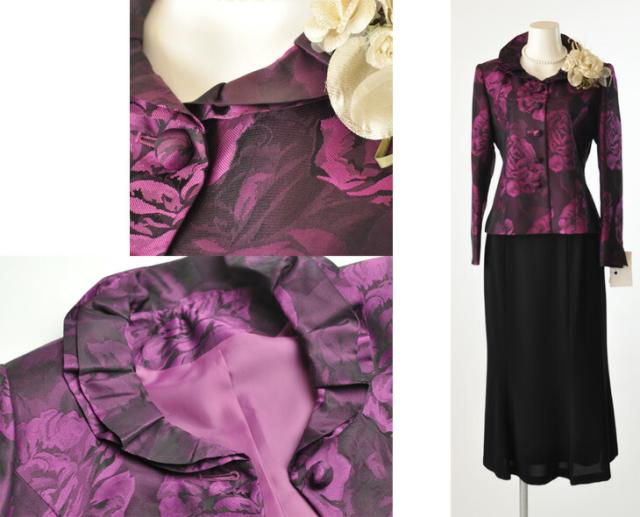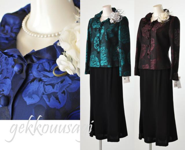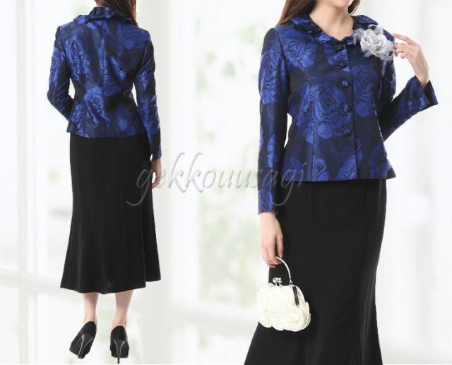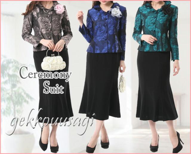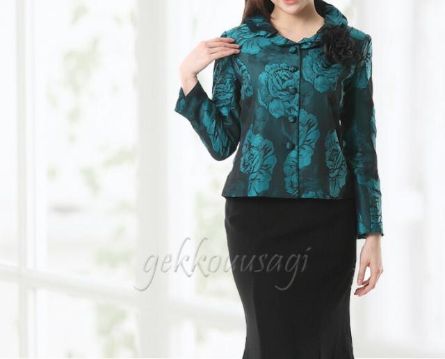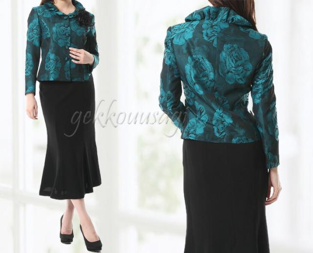 9号/11号/13号 上質素材フリル襟ジャケット・ロングスカートスーツ カラーフォーマルスーツ 花柄ジャガードスーツ 20代 30代 40代 50代 60代 70代 80代 レディーススーツ 母の日 卒業式 入学式 結婚式【選べる6色】5248(AM9u)