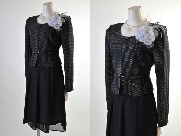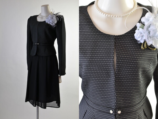 セットアップスーツ おしゃれ 9号 11号 13号 3点セット フォーマル ワンピース ワンピーススーツ お出かけ 卒業式 入学式 黒 ワンピース きれい め 美シルエット ワンピース 20代 30代 40代 50代 60代 レディーススーツ オフ 黒 ドット 21402