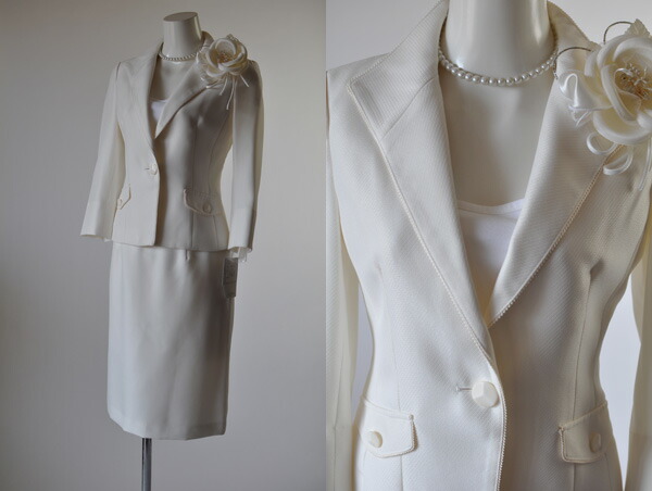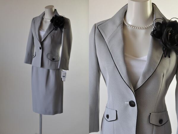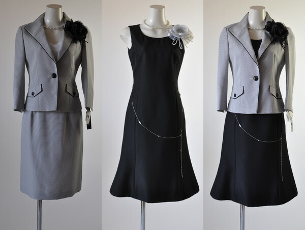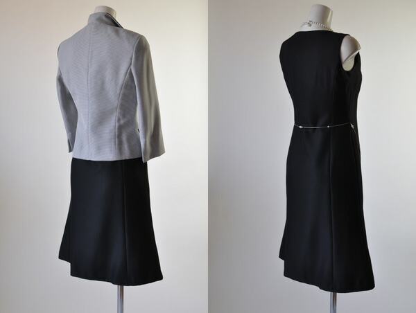7号、15号サイズのジャケット、スカート、ワンピースの3点セットスーツです。
