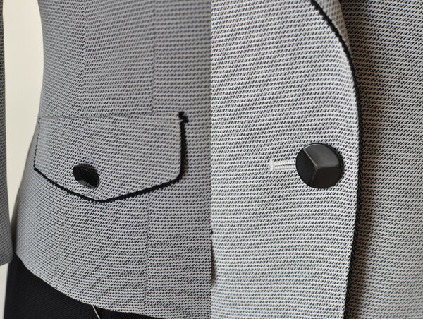 スカートは後ろスリット入りボックススカート。左ファスナー開きです。