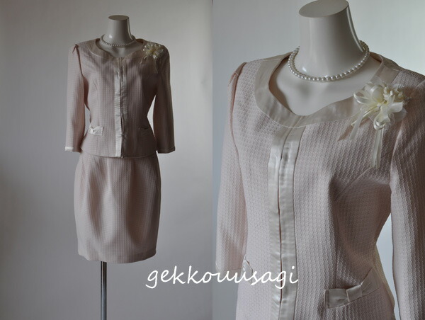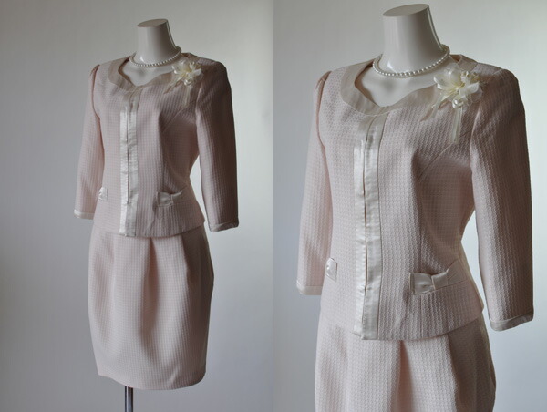 スカートスーツ ひざ丈 ママスーツ 入園式 入学式 控えめピンク 七分袖 タイトスカート 20代 30代 40代 11号 13号 七五三 安い かわいい 可愛い きれいめ 上品 母親スーツ ミセススーツ お呼ばれ 面接 保護者会 学校行事 着痩せ 102843