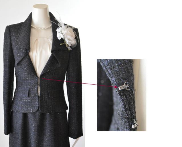色はダークネイビー系、ラメ入りツイード素材を使用。