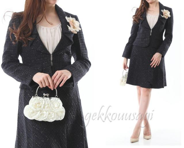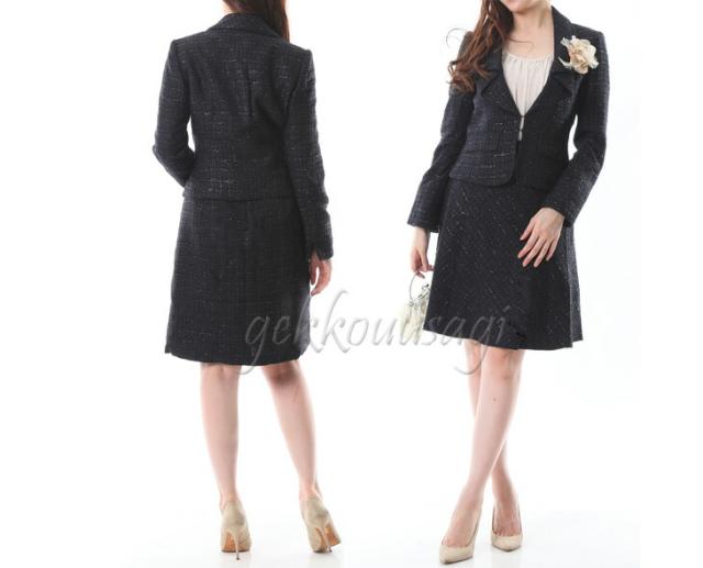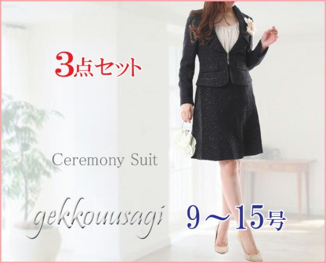 送料無料 ラメツイード3点スーツ 入学式 卒業式 スーツ ママ