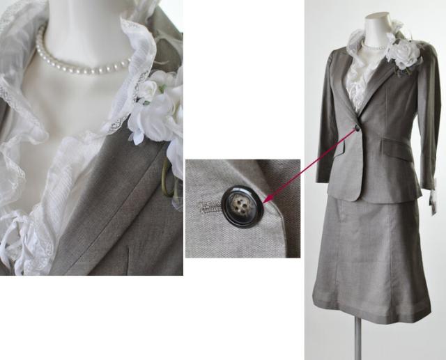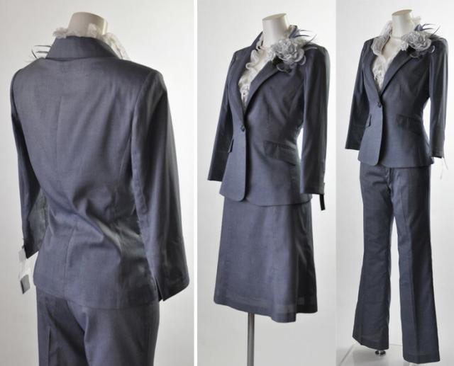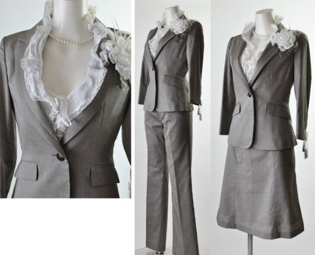 7号、9号、11号、13号サイズのジャケット、スカート、パンツのホワイトジョーラ(WHITE JOOLA)2ボトム3点組スーツです。