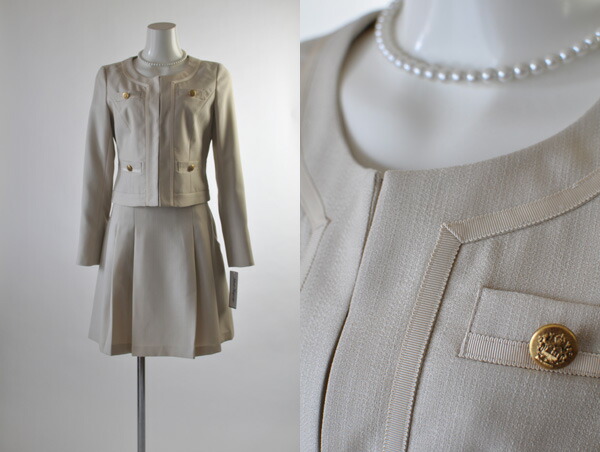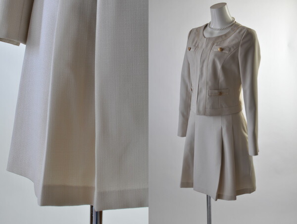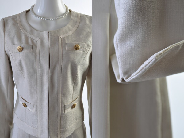大特価 洗える ノーカラージャケット フレアスカートスーツ オールシーズン 入園式 入学式 発表会 【ベージュ・黒】001
