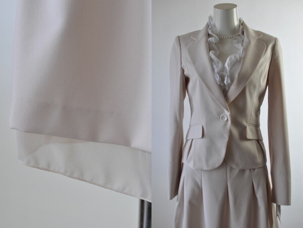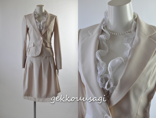 洗えるスカートスーツ 明るめベージュ 裏地背抜きジャケット 裾レーススカート オールシーズン 入学式 卒業式 296