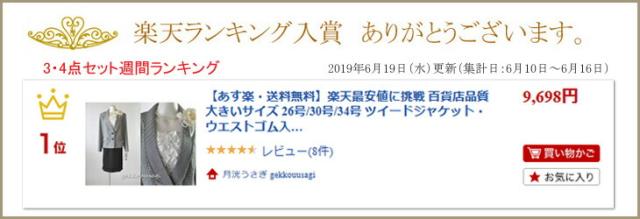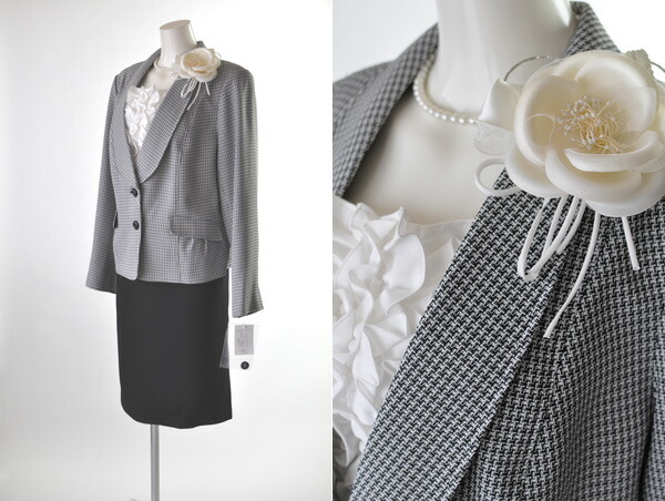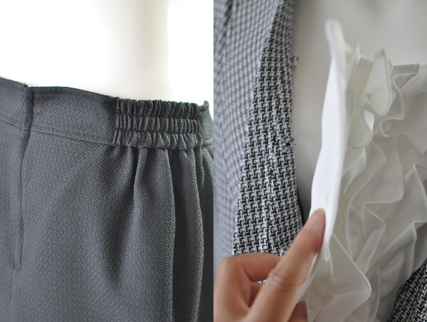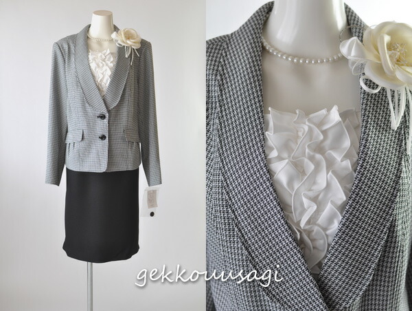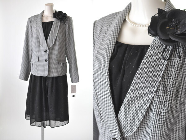 26号、30号、34号サイズのジャケット・スカート・ワンピースの3点組スーツです。