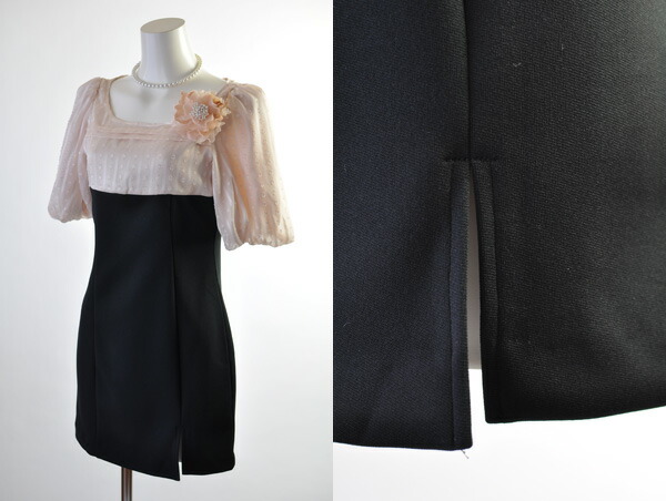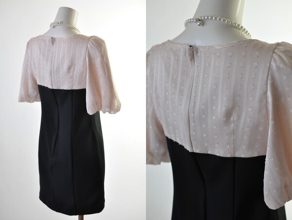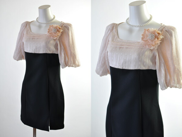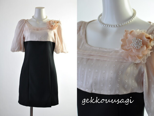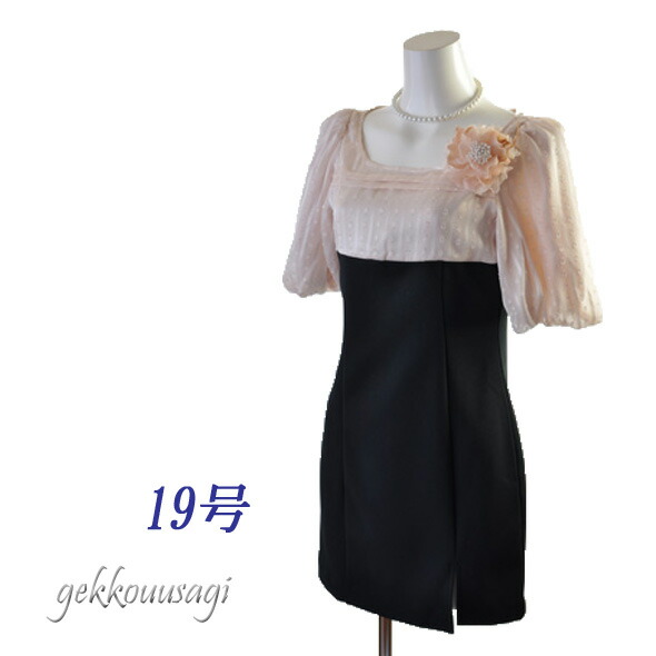 即納 小さいサイズ 7号/9号/11号/13号/15号/17号/19号 大きいサイズ 半袖フロッキー切替ワンピース 【薄ピンク/黒】 828