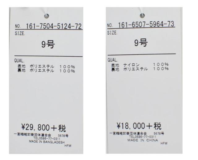 ジャケット本体価格29,800円+税、ワンピース本体価格18,000円+税。