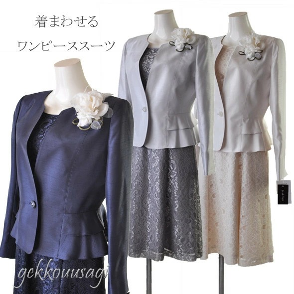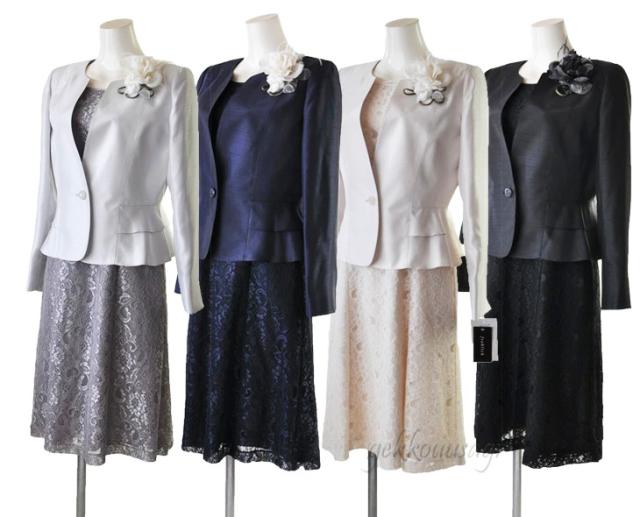 レディーススーツ 結婚式 スーツ ドレス フォーマル レディース ハレの日 セットアップ 親族 50代 40代 60代 9号 11号 13号 15号 光沢感 フォーマル 上質レースワンピース 入学式 セレモニー グレー ピンク ネイビー アイボリーブラック 124&964-963-963-125-125