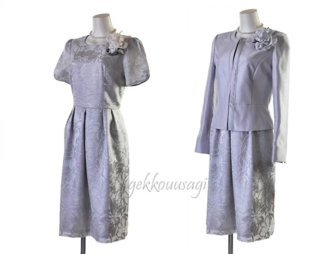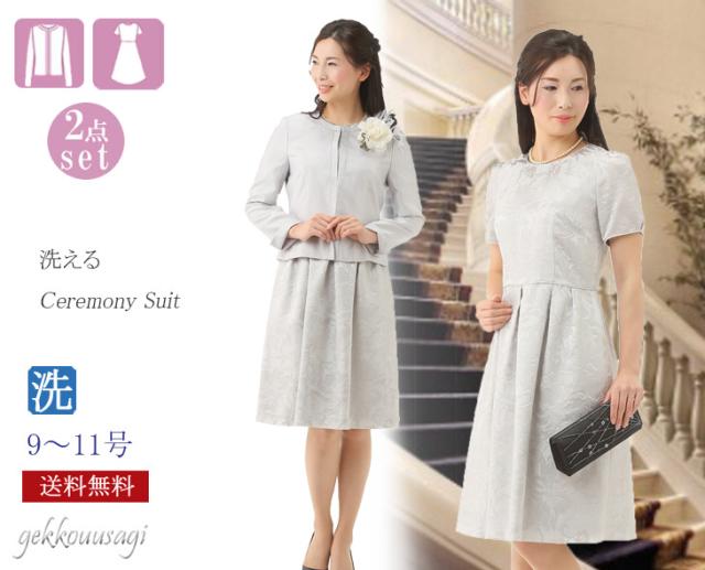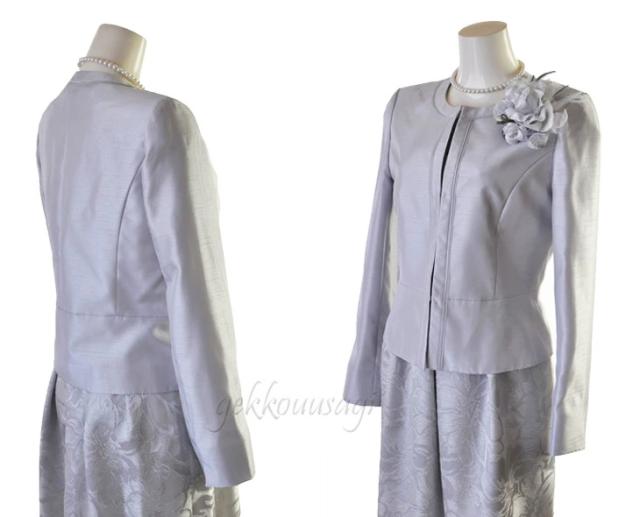 レディース スーツ ノーカラージャケット&シャンタンオパールワンピーススーツ ライトグレー 着回し 着心地 快適 ママ 母 ミセス スーツ 187-965op