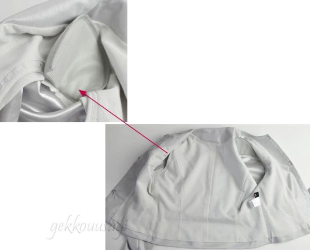 肩パッド入り、袖口スリット入り。