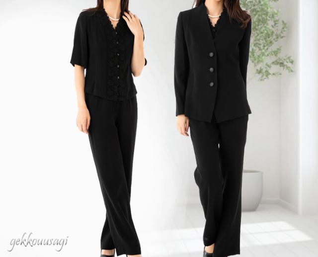 冠婚葬祭 喪服 法事 礼服 ブラックフォーマル 美脚パンツ