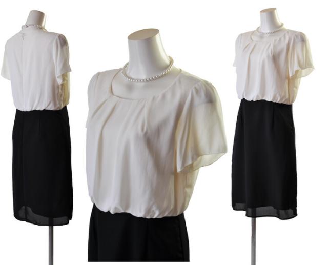 上身頃のジョーゼットと下身頃シフォンのドッキングワンピースです。