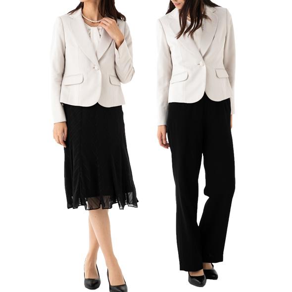 【81%OFF】ママスーツ セットアップ レディース ファッション きれいめ フォーマル 選べるボトムス黒 9号 11号 ライトグレー ベージュ ミセス ママ 祖母 セレモニー 卒業式 入学式 スーツ 母親 発表会 レディーススーツ 入園 卒園 5754