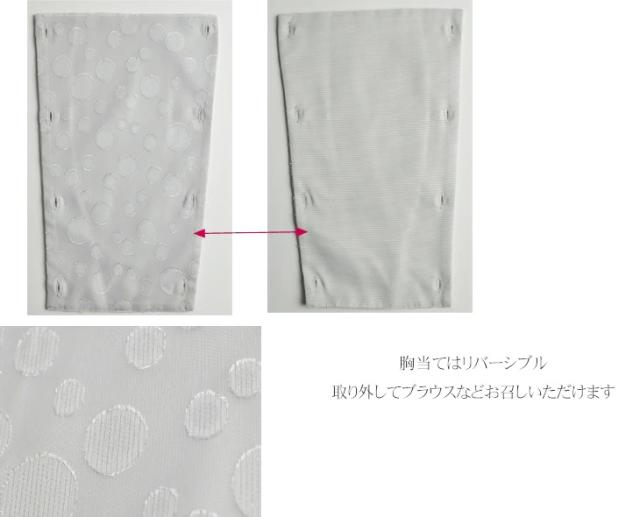 胸当てはボタンで取り外せますので2パターンの着こなしがお楽しみいただけます。