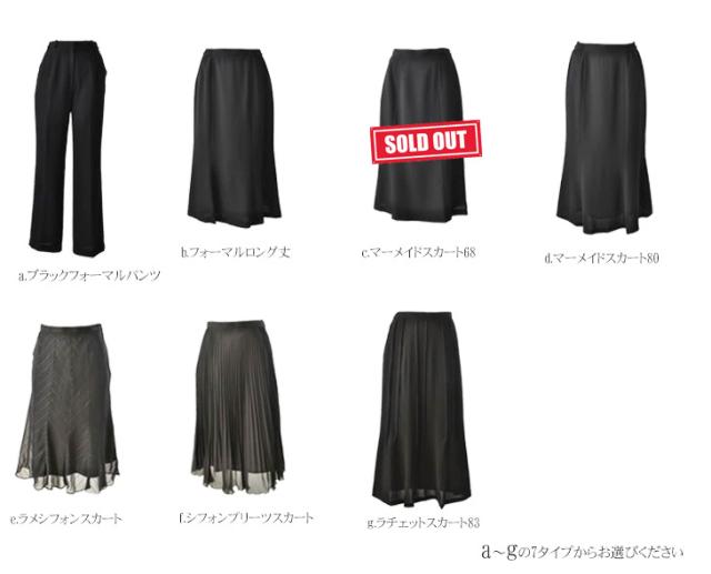 ボトムスはプルダウン選択メニューからパンツorスカートのデザインとサイズをお選びください。
