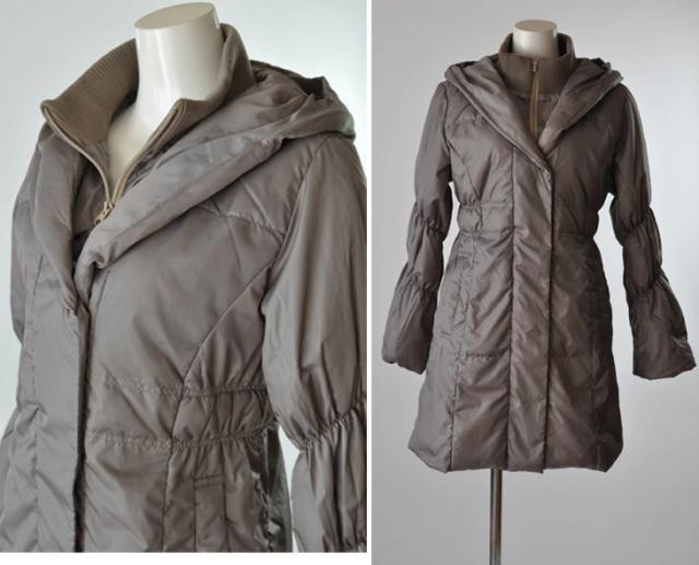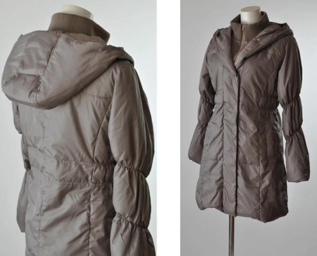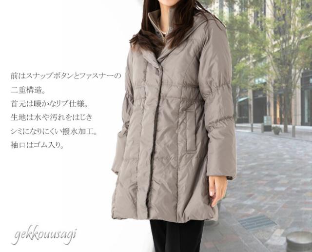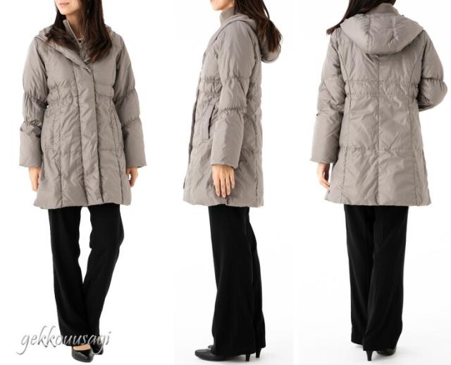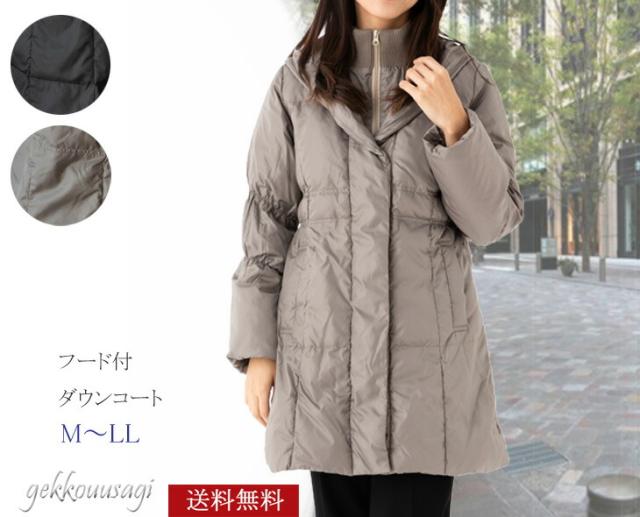 アウター 冬 レディース ダウンコート M L LL フード付きダウンコート シャーリング入り 首筋リブダウンコート 【黒/グレージュ(モカ)】001