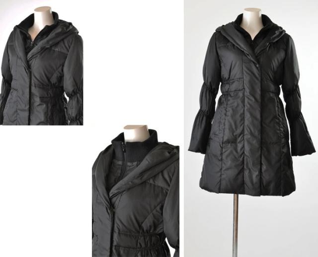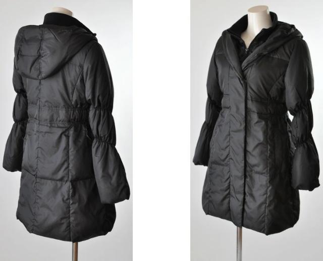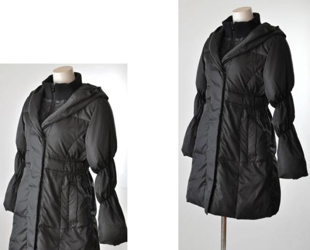 【大特価】レディースダウンコート Mサイズ/Lサイズ/LLサイズ フード付きダウンコート シャーリング入り 首筋リブダウンコート スナップボタンと内側ファスナーの二重構造ダウンコート 【黒/グレージュ(モカ)】001(AU2F3)