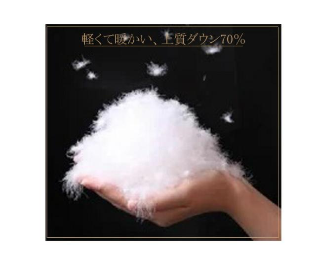 超極暖軽量ダウンコート 中わたはダウン70%、フェザー30%。