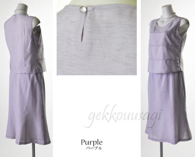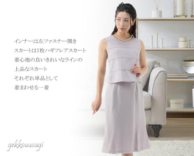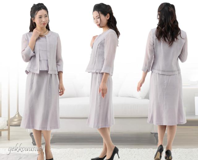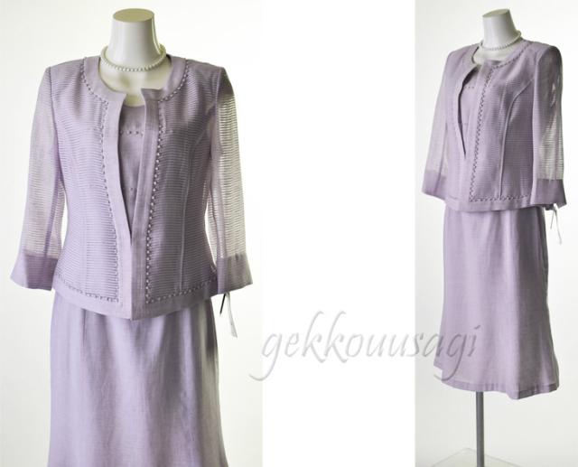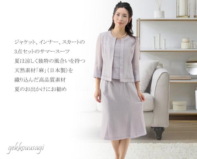 レディースファッション レーヨン麻ボーダー3点スーツ【オフ・パープル】 サマースーツ 夏 秋スーツ 日本製素材 母親 スーツ 782