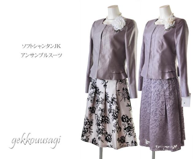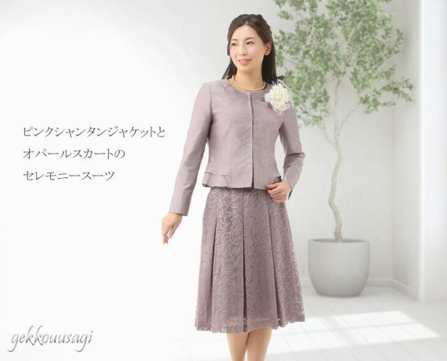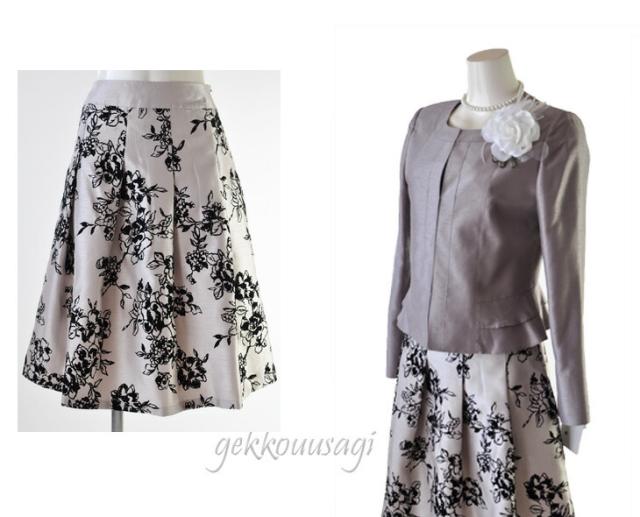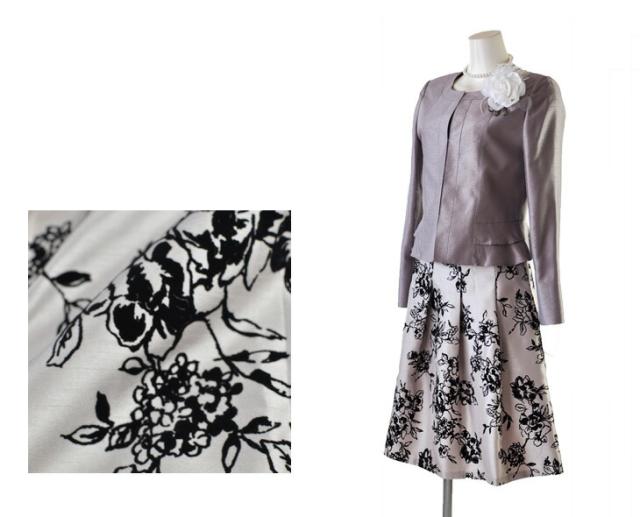 スーツ レディース シャンタン ノーカラージャケット フォーマル ウエストゴム入り オパールスカート フロッキー 花柄スカート 833-695/996