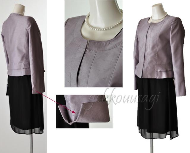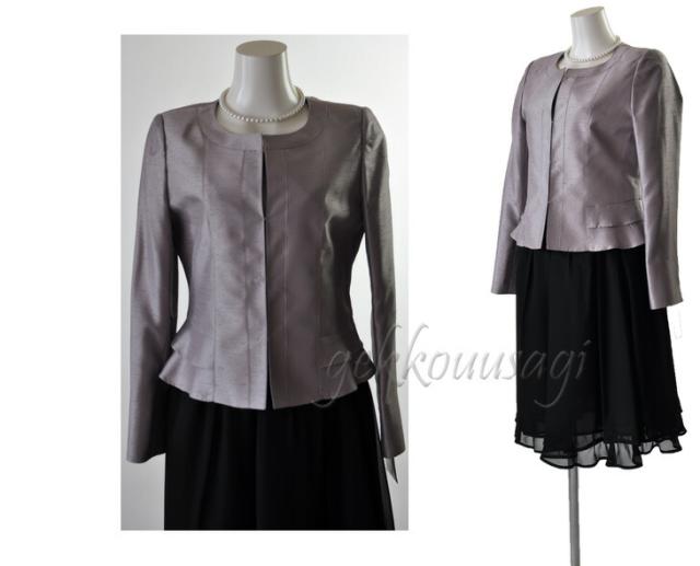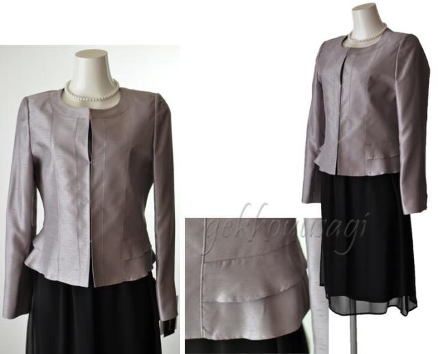 2点スーツ 光沢感 上質 シャンタン ノーカラージャケット ピンク・グレー ペプラム切替ジャケット 5833J-224(OP-AU1F7)-226