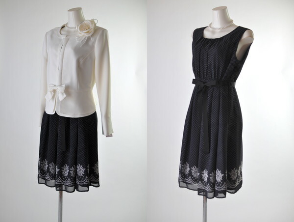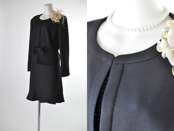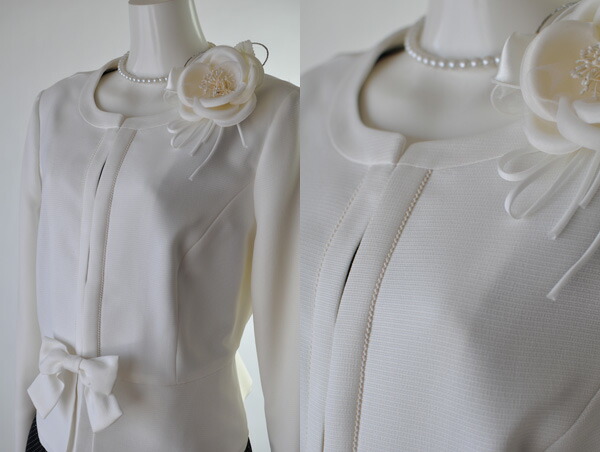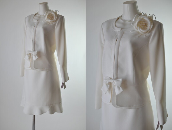 3点セットアップスーツ リボンアクセサリー付ウエスト切替ジャケット・裾切替マーメイドスカート・ウエストリボン付ワンピース 360