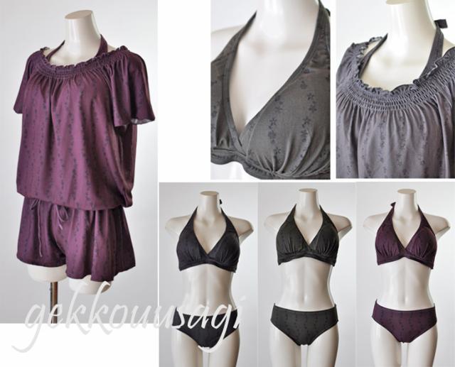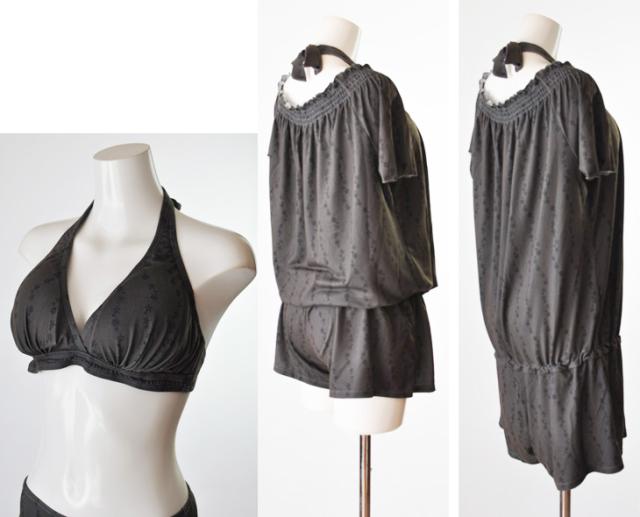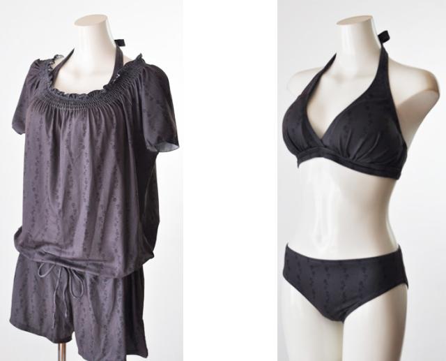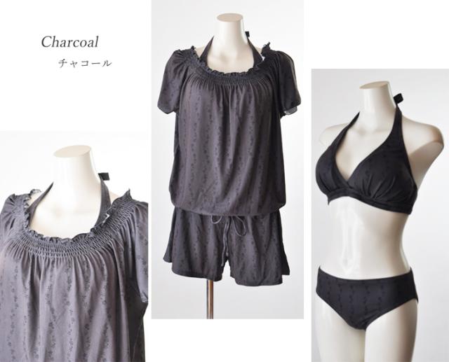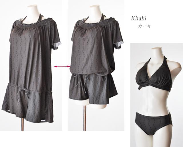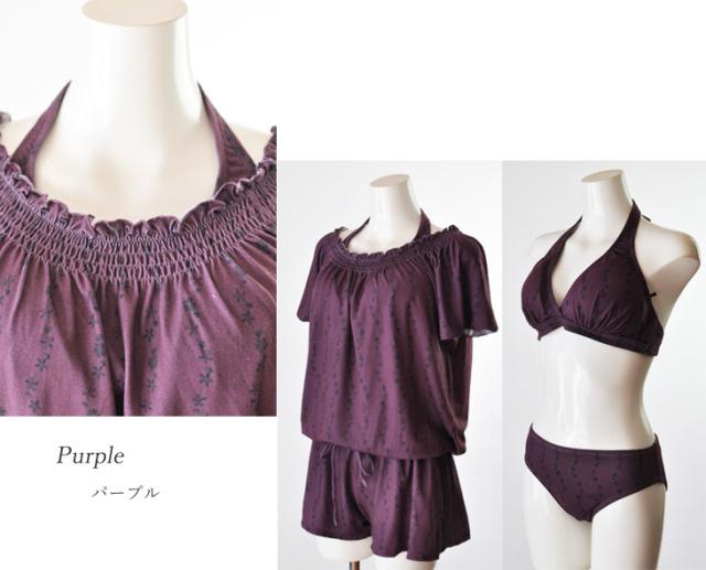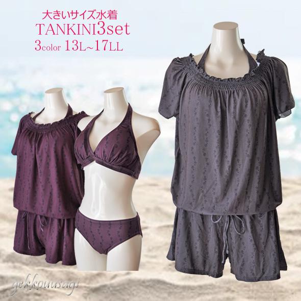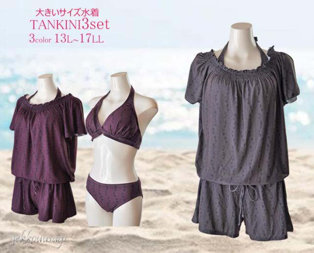 水着 体型カバー タンキニ ビキニ 3点セット 13号 15号 17号 TROPICAL BEACH 小花柄 ホルターネックビキニ&ロンパース ワンピース水着 283