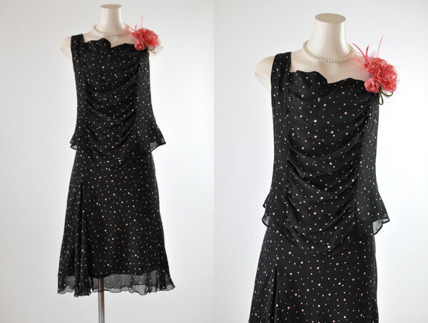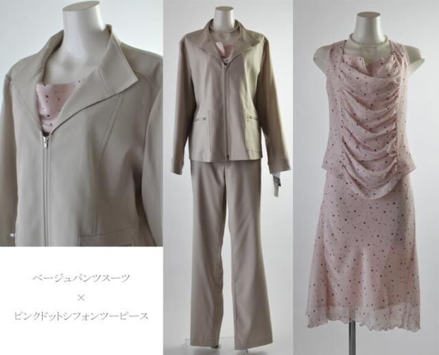 ベージュジャケットにはピンク色ワンピース、黒ジャケットには黒色ワンピースがセットになっています。