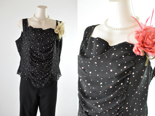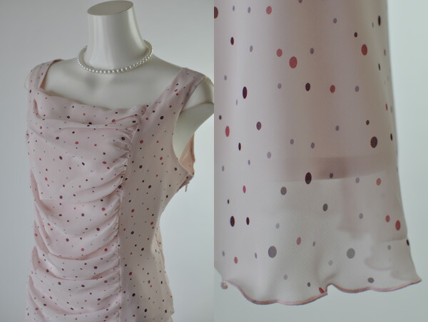 ブラウスはドットプリントが可愛らしいシフォン素材。