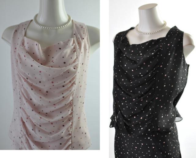 裾ドレープスカートはブラウスと同素材、サイドファスナー開きです。