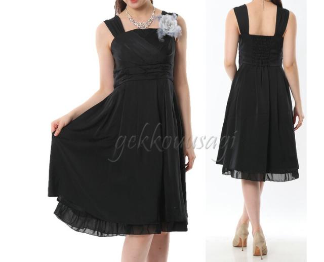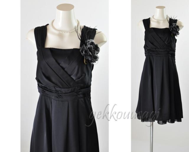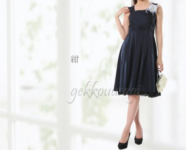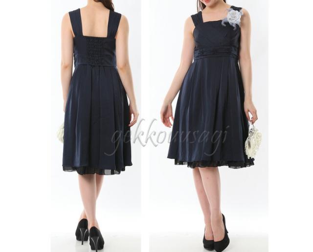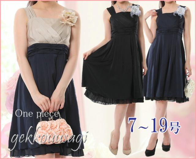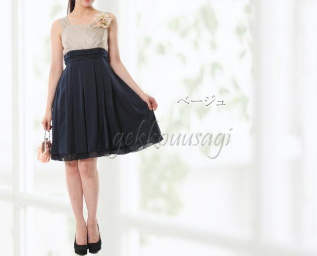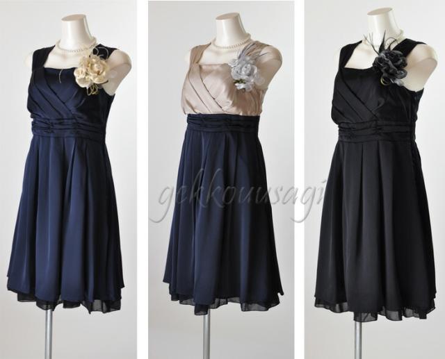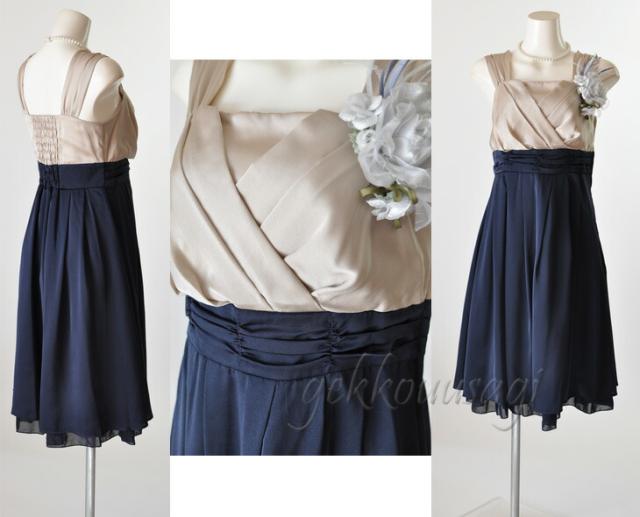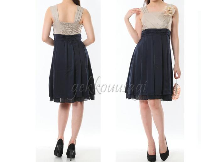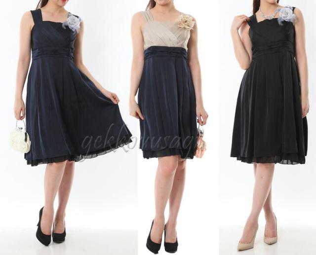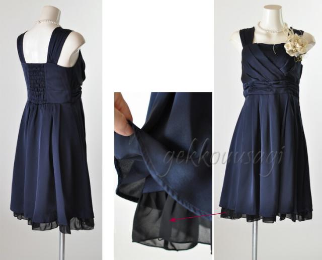 カシュクール 光沢感 ティアード裾フォーマルワンピース パーティードレス ストレッチ【ベージュ・紺・黒】 結婚式 謝恩会 401M-402L