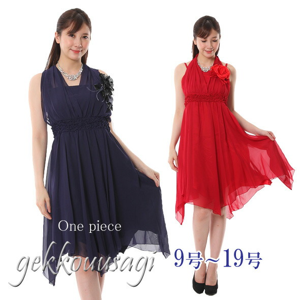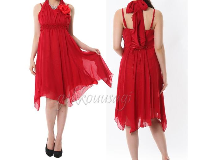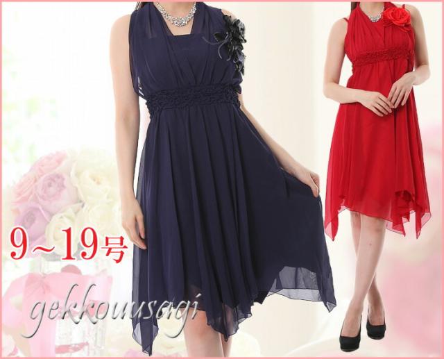 大幅値下げ セール【赤・グレープ・黒】9号/11号/13号/15号/17号/19号 大きいサイズ 着丈調節可能 シャーリング入り裾アシンメトリーフォーマルワンピース シフォン 着こなし2way ホルターネック ストール ドレス ミセスワンピース セレモニー ワインカラー 110(HG4s)