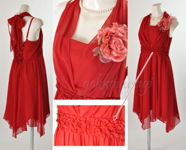 ドレス お呼ばれ 20代 30代 40代 50代 結婚式 パーティー ドレス セレモニー 衣装赤 グレープ 黒 着丈 調節 シャーリング入り 裾アシンメトリー フォーマルワンピース シフォン 着こなし ホルターネック ストール ワインカラー 110