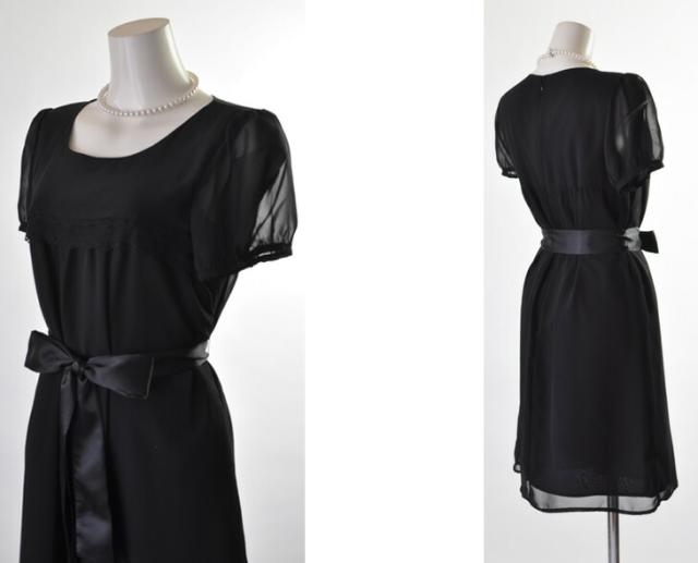 ワンピースは黒色シフォン素材。