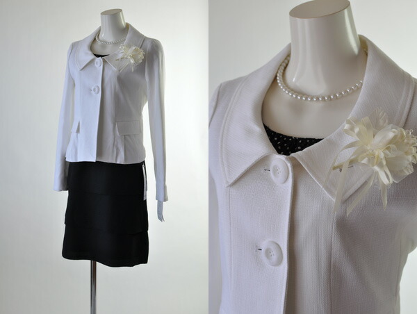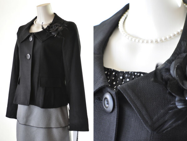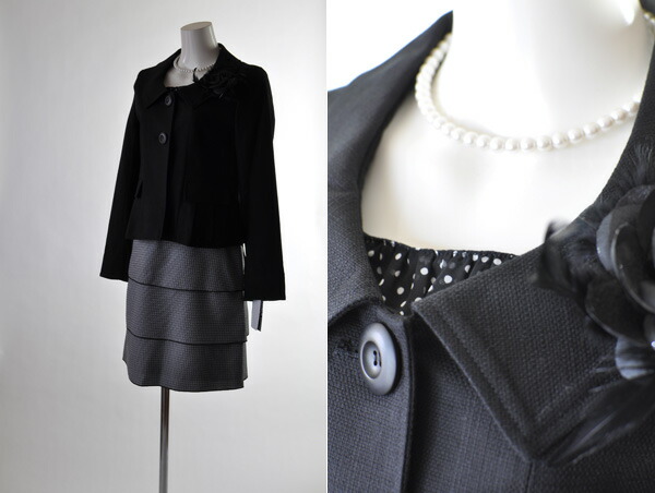 9号/11号/13号 13号ジャケット&15号ワンピース 綿素材 ジャケット黒/白&七分袖 ティアードワンピース セットアップ 463/228
