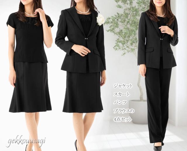 フォーマルスーツ レディース 7号 9号 背抜きジャケット スカート パンツ 2ボトムスーツ ブラウス 着回し 4点セット 卒業式 入学式 ママ フォーマル 冠婚葬祭 30代 40代 50代 60代 70代 母親 スーツ お買い得 グレー 黒 306(AM7/SBL2F6)