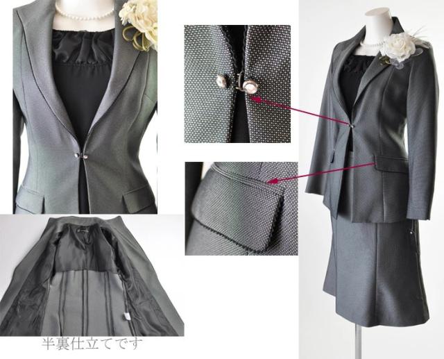 色はグレーと黒の2色。ジャケット、スカートには若干の光沢感があります。