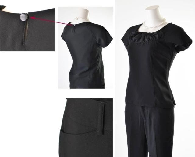 黒色パンツはシフォン素材の美ライン。また下丈は78cm。