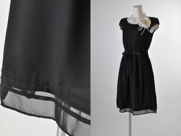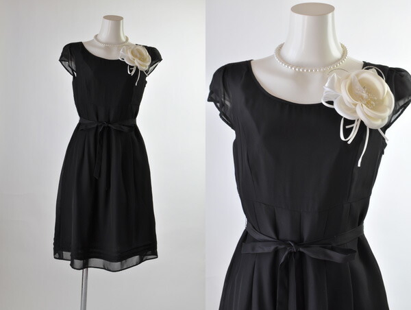 ワンピースは黒色で、シワになりにくいシフォン素材。