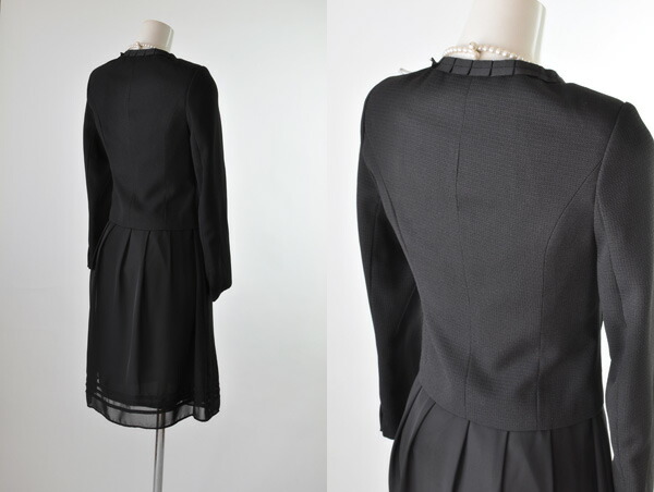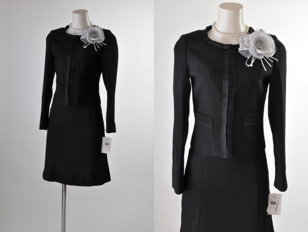 残りわずか 即納 小さいサイズ7号/9号/11号/13号/15号大きいサイズ 凛としたスカートスーツスタイル ティアード裾が可愛いワンピース ノーカラージャケット3点スーツ 黒/グレー 卒業式 入学式 944(BL2F1Y5)