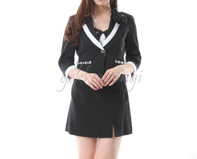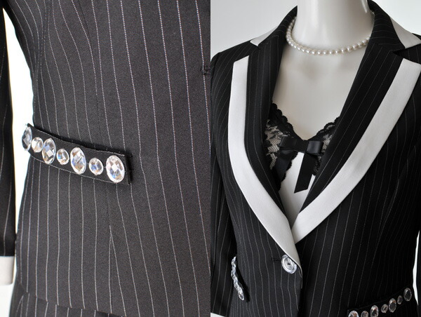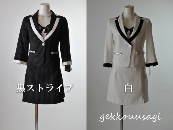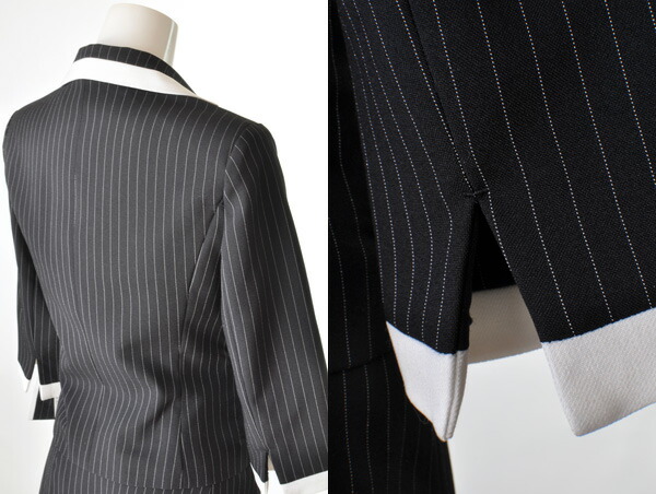 七分袖ジャケットセレモニースーツ 共布ベルト付スカート3点スーツ 黒ストライプ/白 卒業式 入学式 247/246