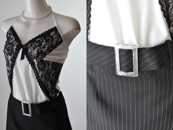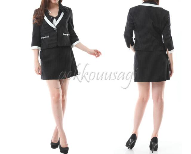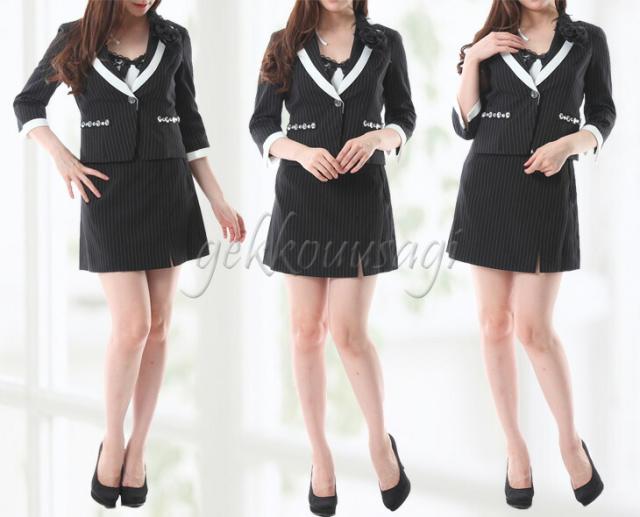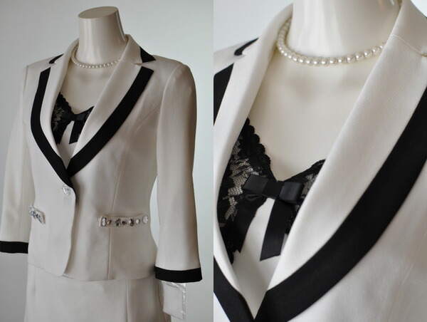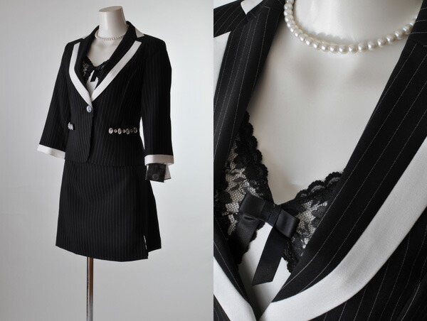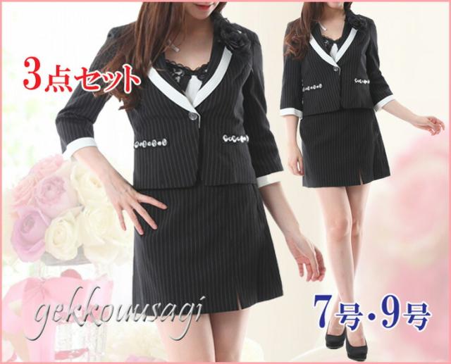 即納 小さいサイズ 7号/9号/11号/13号/15号/17号/19号 大きいサイズ 七分袖ジャケットセレモニースーツ 共布ベルト付スカート3点スーツ レースが映えるキャミソール 黒ストライプ/白 卒業式 入学式 247/246【最安値挑戦】(AM5S/BL2F1Y3)