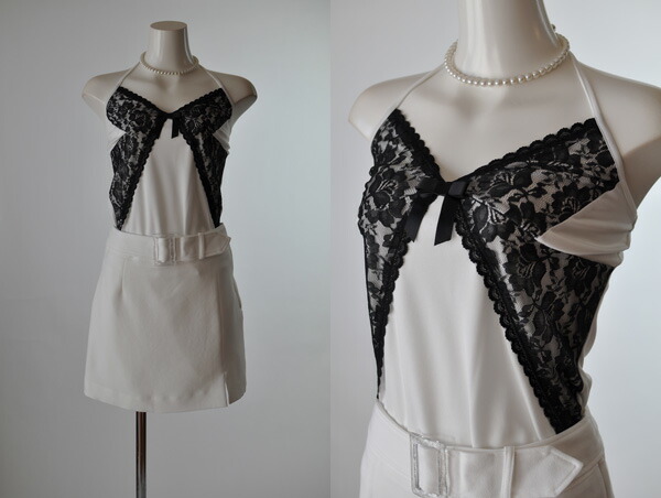 キャミソールは各色共通で、白地に黒レースが映える大人キャミソール。