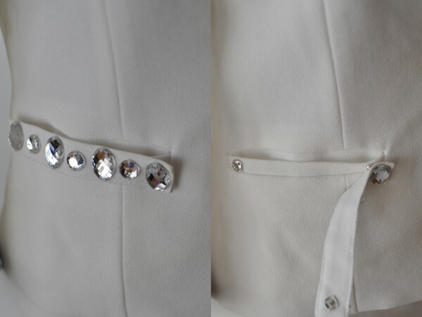 取り外しビジュー付3点セット(七分袖ジャケット+台形スカート+ホルターネックキャミソール)(ベルト付き)